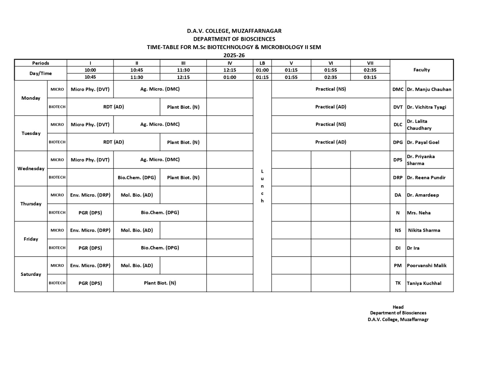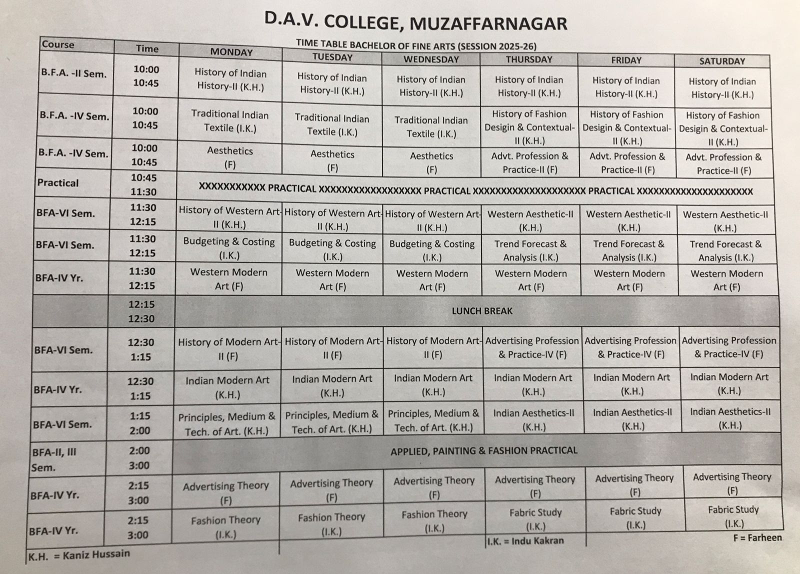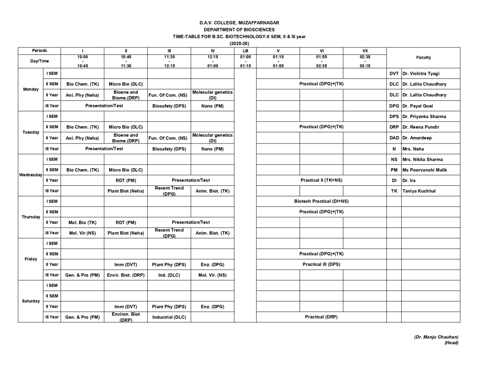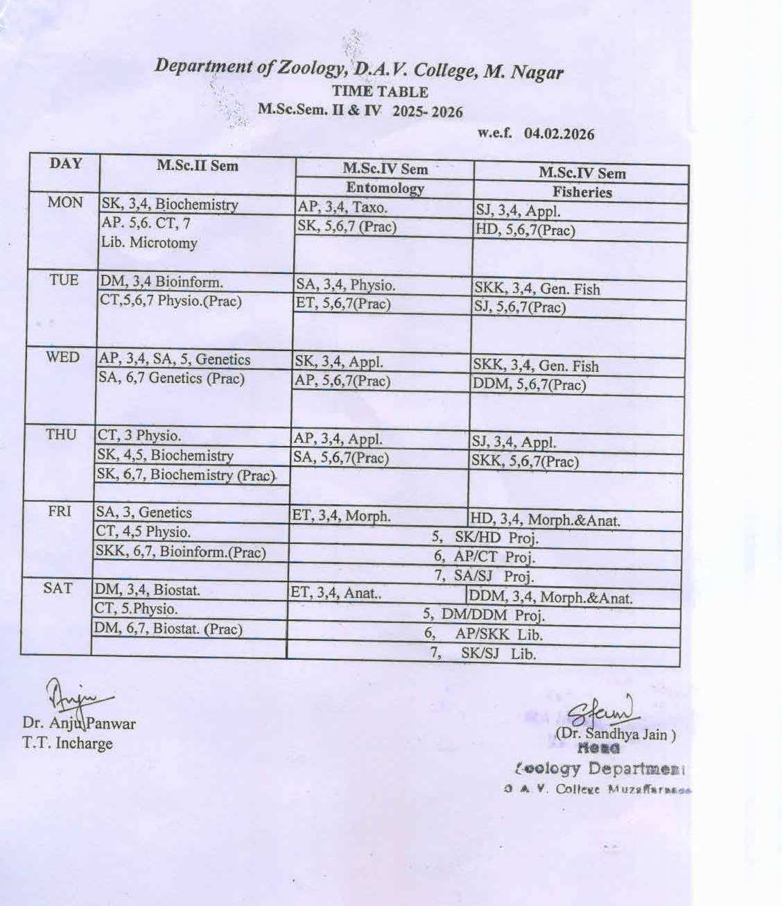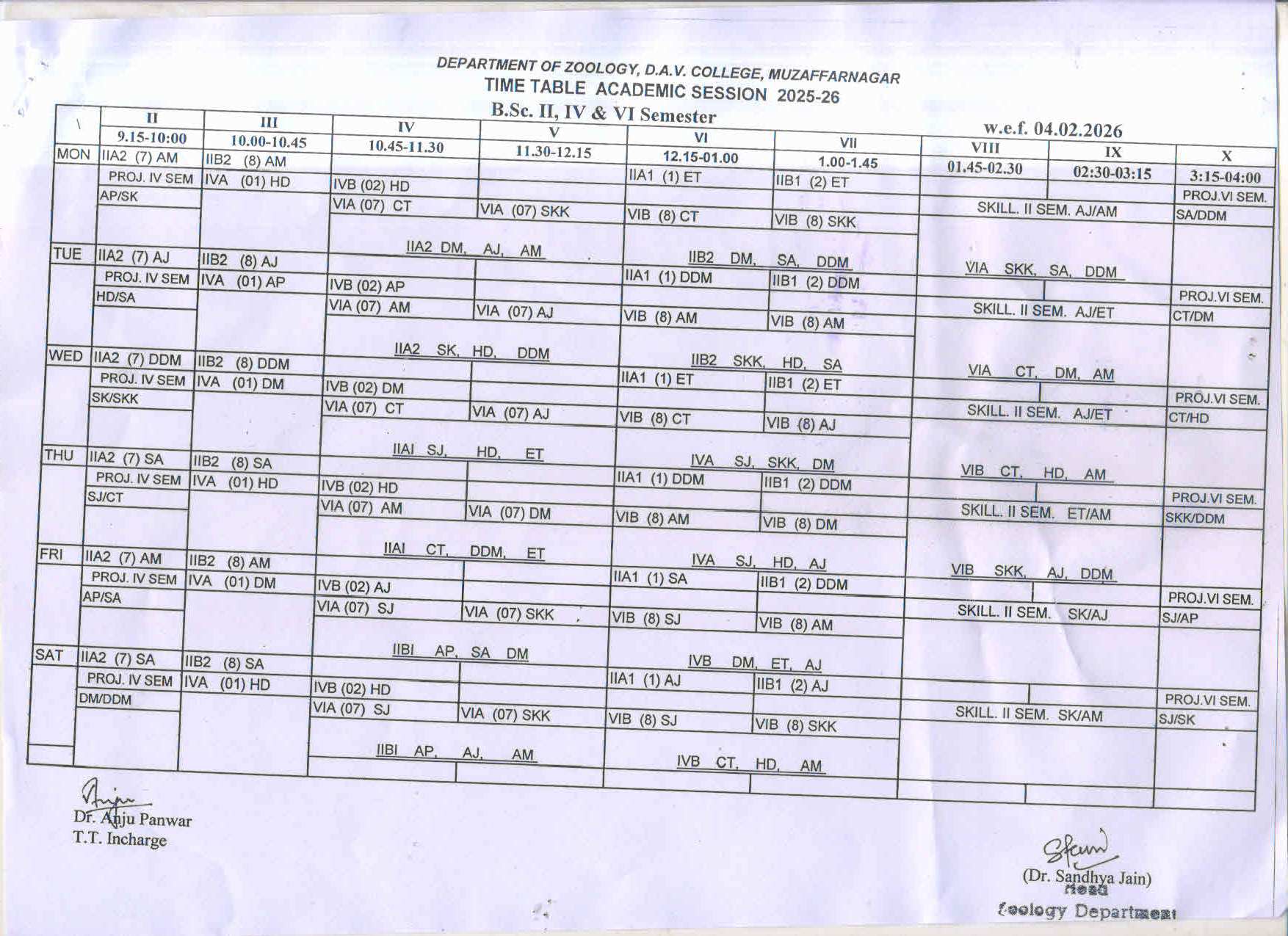 TIME TABLE 2025-26